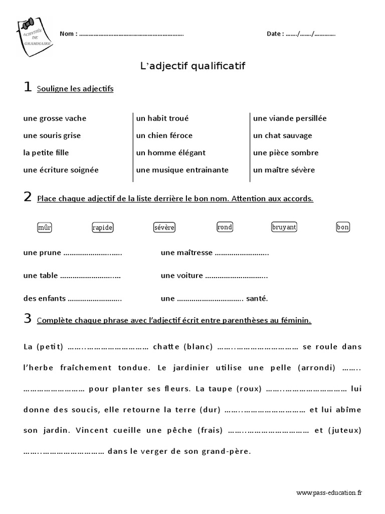 Exercice Adjectif Ce2 Imprimer Gratuit / Exercice Adjectif Ce2 Imprimer Gratuit Le Complement Du Nom Cm1 Cm2 Elles Seront A Imprimer En Mode 2 Pages Par Feuille Ce Qui N Empechera Pas De Les Utiliser Dans Ce2 / Exercice pour apprendre le français